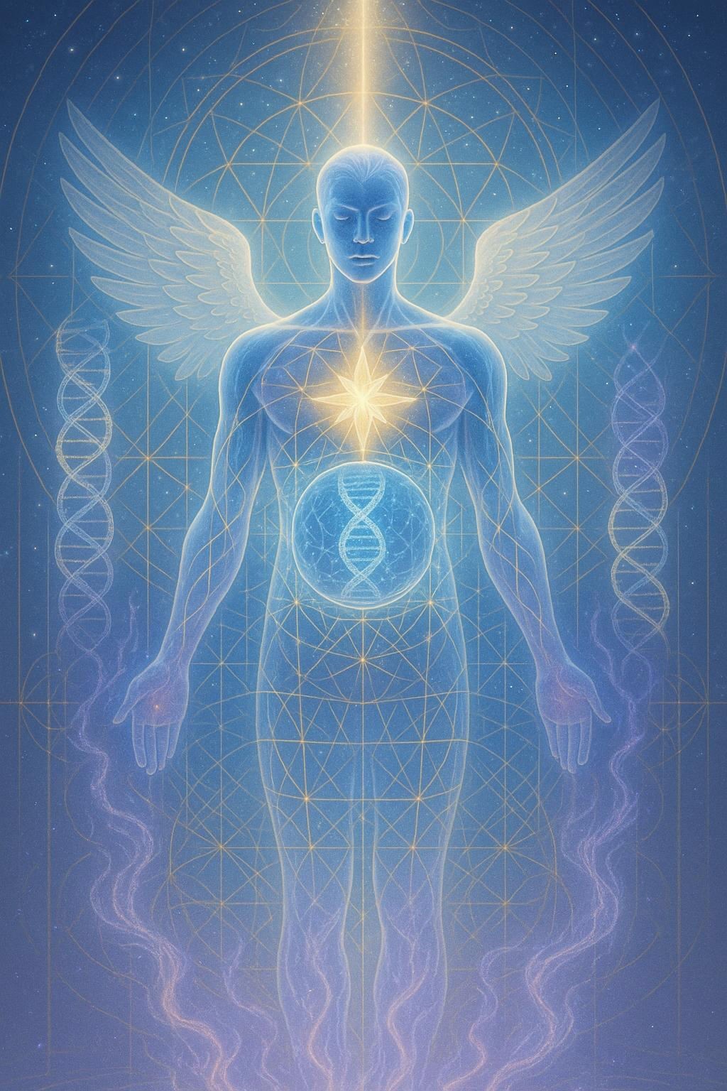 Ein energetisches Netz, das mit solar-seraphischen Frequenzen durchdrungen ist, den Körper umhüllt und rund um die Uhr als göttliches Immunintelligenzfeld fungiert.